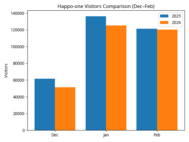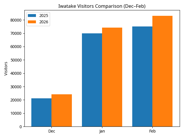 白馬村スキー場の入込データを分析すると、2026シーズン(12月〜2月累計)はスキー場ごとに明暗が分かれる結果となりました。