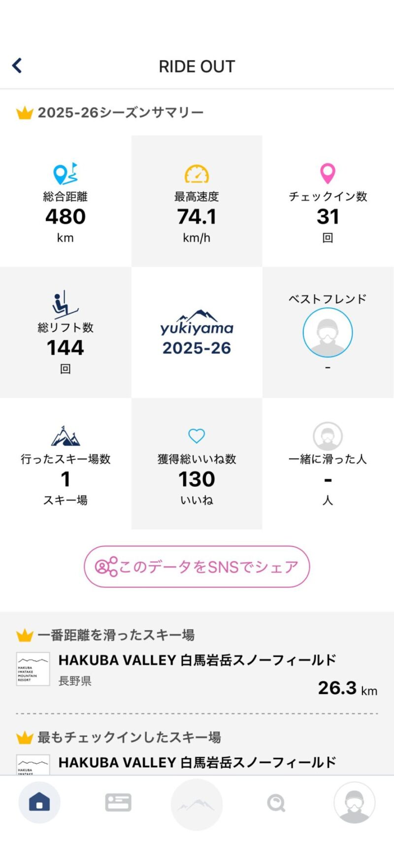 データからも分かる通り、1月に最も多く足を運び、シーズンの中盤に集中して滑り込む形となりました 。