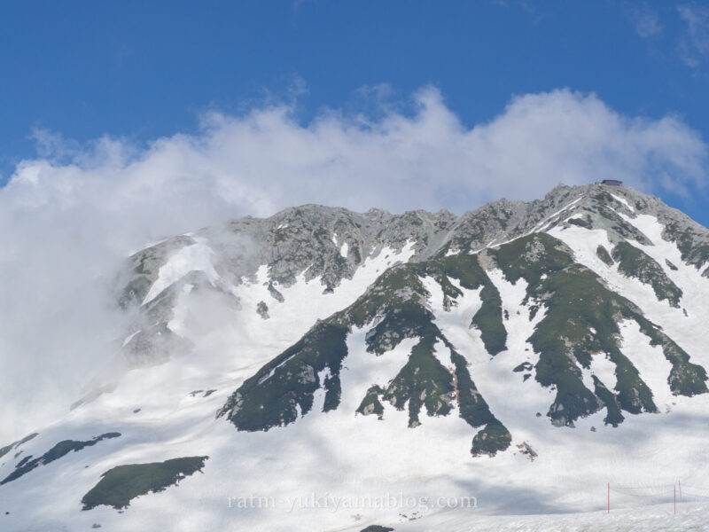 室堂での景色を楽しみにしていたのですが、天候がイマイチ。山がガスで覆われており、時折ガスが抜けた時しか山が見えませんでした・・・