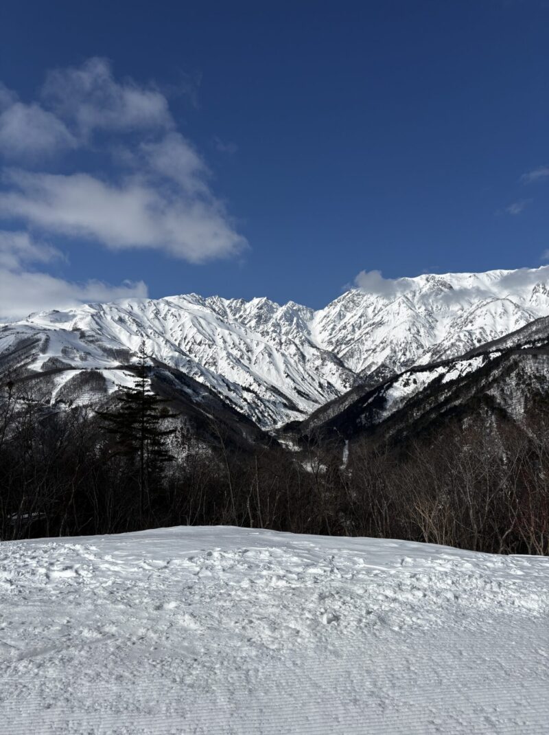 サウスゲレンデから見る八方尾根スキー場・北アルプス。