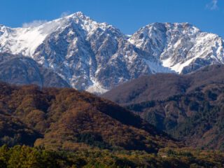 写真・素材 初冠雪で三段紅葉が見頃を迎えた白馬村・北アルプス。白馬大橋から望む秋の北アルプス 長野県白馬村では、北アルプスの三段紅葉が10月下旬〜11月上旬にかけて見頃を迎えます。山頂は雪化粧、中腹は紅葉、麓は緑が残る三段グラデーション。白馬大橋や大町市扇沢駅からの絶景撮影スポット、アクセス、地図情報も紹介します。 2025.10.30 写真・素材