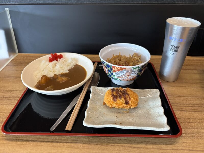朝から何も食べていなかったので、牛丼とカレーをビールで流し込み、次のラウンジへ向かいます。