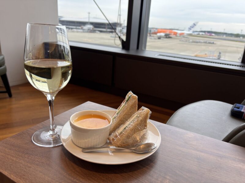 47番ゲート付近にあり、こちらは空いていました。軽食はサンドイッチ等がありましたが、先程のラウンジと比べると種類は少なく感じました。