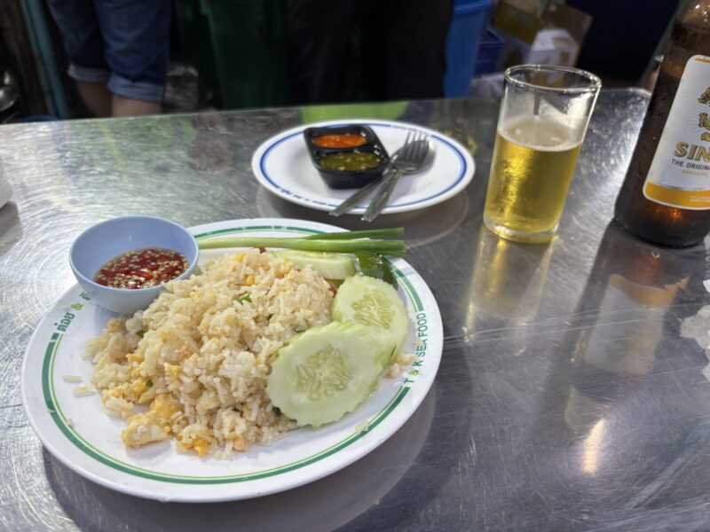 タイのチャーハンは薄味が基本で、別皿のタレをかけて調整するスタイル。